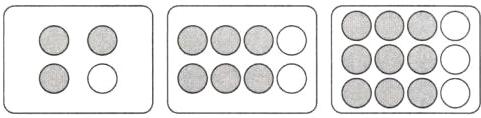 2. 在下面每幅图中涂色表示$\frac {3}{4}$。