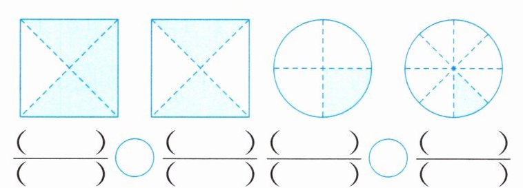 2. (数形结合)用分数表示各图的涂色部分并比较大小。