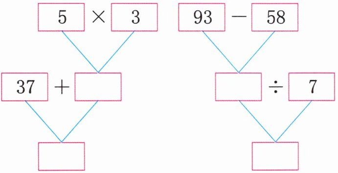 $\boxed{5} × \boxed{3}$ $\boxed{93} - \boxed{58}$