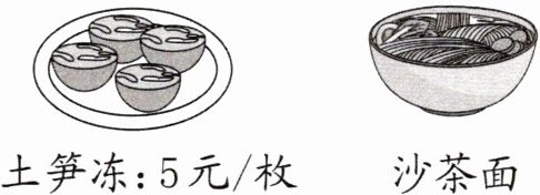 3. 新情境 地域美食 沙茶面和土笋冻都是厦门的特色美食。一碗沙茶面的价格是一枚土笋冻的5倍。买2碗沙茶面和4枚土笋冻共需要(