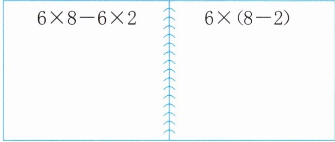 $6 × 8 - 6 × 2$ \qquad\qquad\qquad $6 × (8 - 2)$