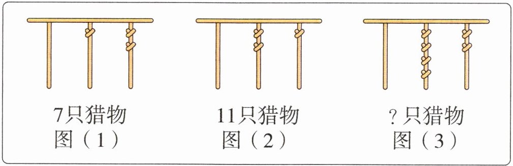 )。(4)(数学文化)远古时期,人们用绳子打结记录数量,即“结绳计数”。下面各图记录猎物只数的方法是“从右往左、满五进一”。按照这个方法,图(3)表示的是(