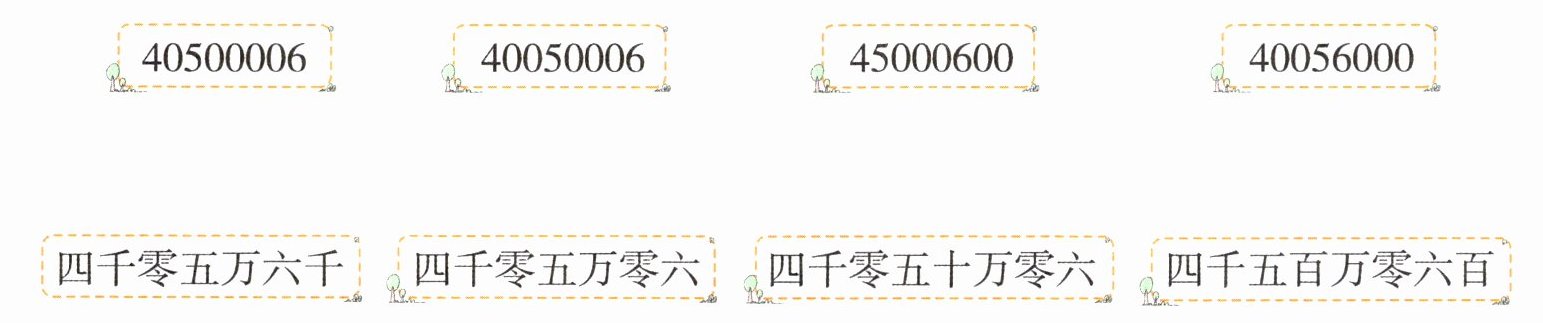 40500006—四千零五十万零六;40050006—四千零五万零六;45000600—四千五百万零六百;40056000—四千零五万六千