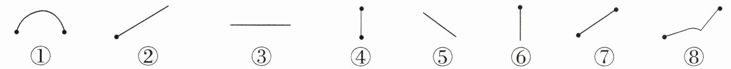 1. 下面的图形中,哪些是直线? 哪些是射线? 哪些是线段? (填序号)