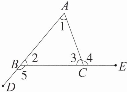 2. (思维拓展)如图,把三角形 ABC 的边 AB 延长到点 D,BC 延长到点 E。(三角形三个内角的度数和是$180^{\circ }$)