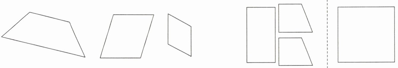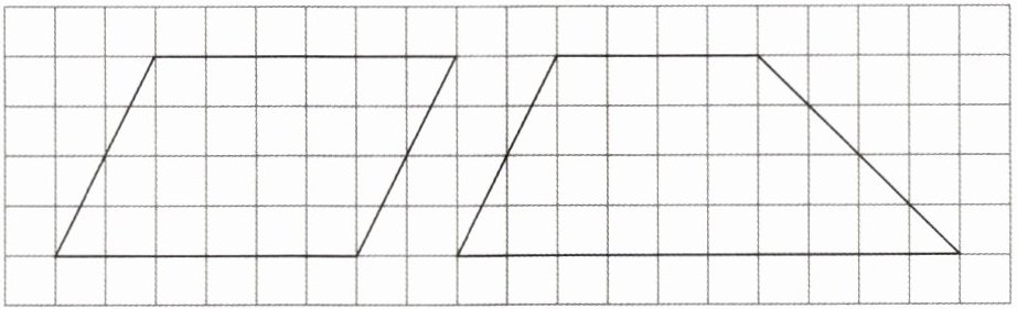①在平行四边形中画一条线段,把它分成两个直角梯形。