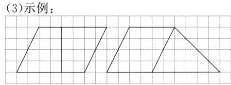 ②在梯形中画一条线段,把梯形分成一个三角形和一个平行四边形。