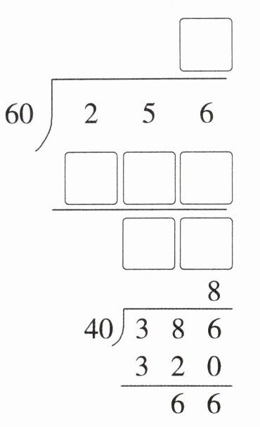 想:被除数的前两位不够除,要看前( )位,$60×$( )接近256且小于256,所以商( ),写在( )位上,余数是( )。