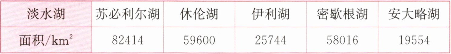 1. 请你把世界五大淡水湖的面积(约为)按从大到小的顺序排列起来。