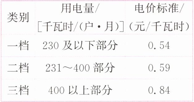 2. (温州龙湾真题)某市重新调整电价,收费标准如右表。菲菲家10月份的用电量为330千瓦时,电费是多少元?