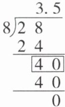 2.(湖州真题)把1根长28m的长跳绳截成8根长度相同的短跳绳,求每根短跳绳长多少米。用右面的竖式计算,竖式中方框里的“40”表示(