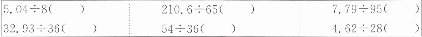 下面各题的商哪些小于1?在后面的括号里画“√”。