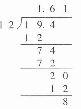阳阳说:“我除到百分位,看到余数是‘8’(如右图),就能知道 $19.4÷12≈1.62$。”你觉得阳阳的说法对吗? 请说明理由。