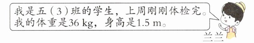 我是五(3)班的学生,上周刚刚体检完。我的体重是 36 kg,身高是 1.5 m。