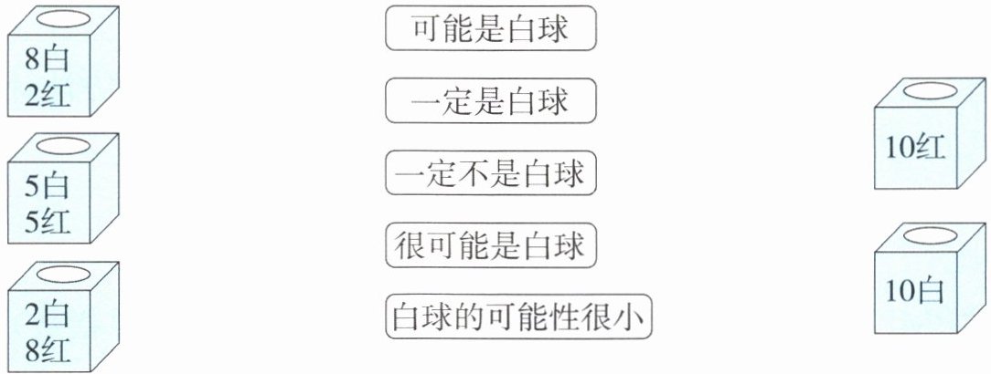 3. (宁波北仑真题)从下面五个盒子中分别摸出一个球,结果是哪个? 连一连。