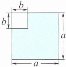 (2)求下图中涂色部分的面积。聪聪说可以用“$a^{2}-b^{2}$”来计算,明明说也可以用“$(a + b)×(a - b)$”来计算。你知道明明是怎样想的吗?