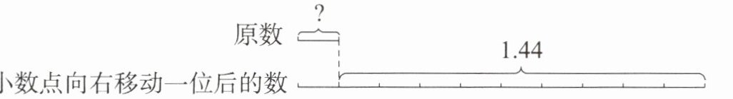 3. (温州平阳真题)把一个小数的小数点向右移动一位,所得的数比原数大1.44。原数是多少?明明同学想了两种方法来计算。