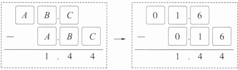 解:设原数为$x$,则小数点向右移动一位后的数为$10x$。$10x - x = 1.44$ $x = 0.16$