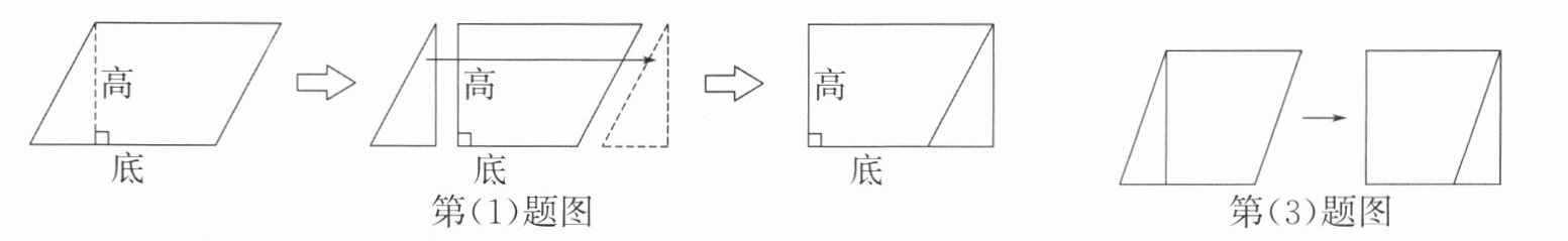 (1)如图,把一个平行四边形转化成一个长方形,转化后面积(