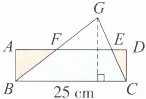 4. (数学文化)《九章算术》中有这样的论述:“半广者,以盈补虚为直田也,亦可半正从以乘广。”指的是取底边的一半,通过割补,使三角形变成长方形,也可以取高的一半,通过割补变成长方形。下图中E、F点均为三角形两边的中点,已知长方形ABCD的面积为150cm²,图中标出的三角形BCG的高是多少厘米?