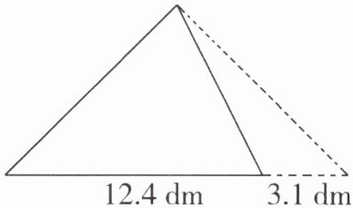 5. 如图,一个三角形的底是12.4dm,如果底延长3.1dm,高不变,那么它的面积就增加6.2dm²。原三角形的面积是多少平方分米?