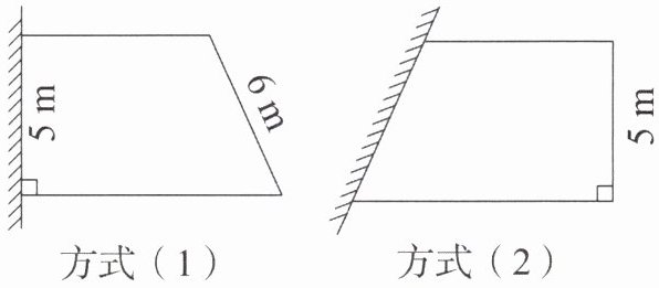4. 王叔叔要用篱笆围成一个一面靠墙的直角梯形养鸡场,有下面两种方式可供选择(如图)。已知篱笆的全长是 $20m$,哪种方式围成的养鸡场的面积大一些?