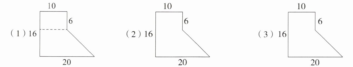2. (温州苍南真题)求下面图形的面积,各种方法分别是怎么算的? 在图中用虚线表示出来。[第(1)题已画]