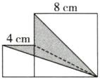 3. (一题多解)如图,如果两个正方形的边长分别是8 cm和4 cm,那么涂色部分的面积是多少平方厘米? (用两种不同的方法求解)