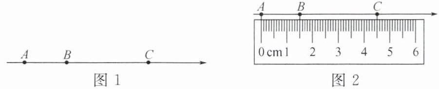 12. 如图1,点A,B,C是数轴上从左到右排列的三个点,分别对应的数为-4,b,5.某同学将刻度尺如图2放置,使刻度尺上的数字0对齐数轴上的点A,发现点B对齐刻度尺1.5cm处,点C对齐刻度尺4.5cm处.