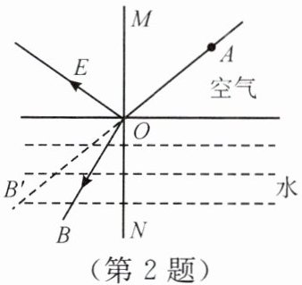 2. [跨学科]如图,当光线从空气射入水中,会发生折射与反射现象,其中与$\angle AOM$互为对顶角的是 (