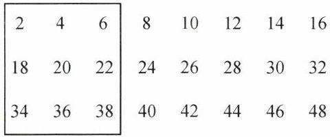 (1)$2+4+6+18+20+22+34+36+38=180$,