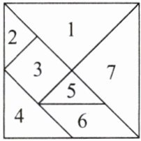 7. 在综合实践课上,张老师让同学们用一张正方形的纸折叠成如图所示的七巧板,然后小颖让一只蚂蚁在七巧板上任意爬行,已知它停在七巧板上的任意一点的可能性都相同,则它停在3号板上的概率是______