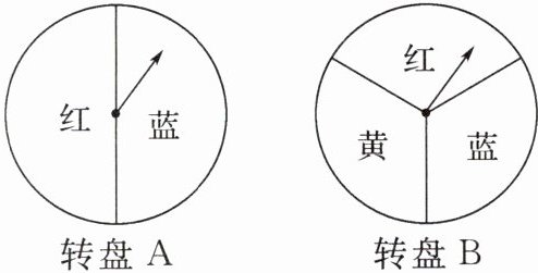 3. 如图是两个可以自由转动的转盘,每个转盘被分成面积相等的几个扇形,并涂上图中所示的颜色.同时转动两个转盘,若转盘A转出红色,转盘B转出蓝色,或者转盘A转出蓝色,转盘B转出红色,则红色和蓝色在一起配成紫色,这种情况下小明获得音乐会门票;若两个转盘转出同种颜色,则小芳获得音乐会门票.