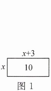 第二步: 如图 1, 构造一个长为 $ x + 3 $, 宽为 $ x $ 的长方形, 且面积为 10;