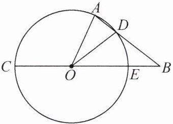 5. 如图,B是⊙O的直径CE延长线上一点,点A在⊙O上,BA交⊙O于点D,且BD= OD.若∠B= 38°,求∠AOD的度数.