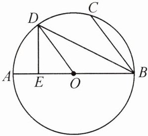 10. 如图,AB是$\odot O$的直径,C、D为$\odot O$上的点,且$BC// OD$,过点D作$DE\perp AB$于点E。