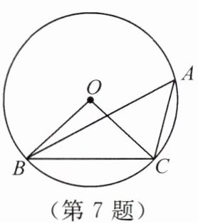 7. (2024 陕西中考)如图,$BC是\odot O$的弦,连接$OB$、$OC$,$∠A是\overset{\frown}{BC}$所对的圆周角,则$∠A与∠OBC$的度数和是______.