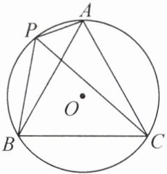 18. 如图,$\odot O的半径为1$,$A$、$P$、$B$、$C是\odot O$上的四个点,且$∠APC= ∠CPB= 60^{\circ}$.