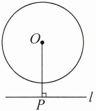 15. 如图,$\odot O$的半径为5 cm,点$O到直线l的距离OP$为7 cm。