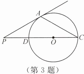 3. 如图,P是⊙O的直径CD的延长线上一点,∠P= 30°,则当直线PA是⊙O的切线时,∠ACP的度数为 ( )