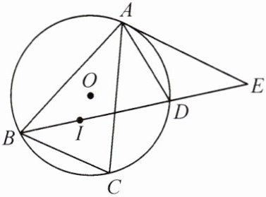 11. (2024镇江一模)如图,等腰三角形ABC内接于⊙O,AB= AC,点I是△ABC的内心,连接BI并延长交⊙O于点D,点E在BD的延长线上,满足∠EAD= ∠CAD. 求证:OA所在的直线经过点I.