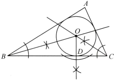(1)解:如图,⊙O即为△ABC的内切圆.