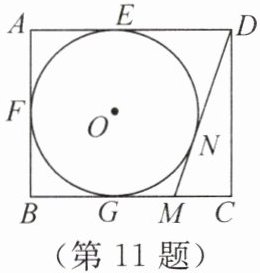 11. 如图,在矩形$ABCD$中,$AB = 4$,$AD = 5$,$AD$、$AB$、$BC分别与\odot O相切于E$、$F$、$G$三点,过点$D作\odot O的切线交BC于点M$,切点为$N$,则$DM$的长为