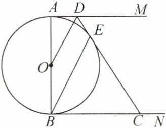 13. 如图,$AB是\odot O$的直径,$AM和BN$是它的两条切线,$DE切\odot O于点E$,交$AM于点D$,交$BN于点C$,连接$OD$、$BE$。