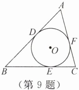 9. 如图,$\triangle ABC与它的内切圆\odot O分别相切于点D$、$E$、$F$。若$\triangle ABC的周长为20$,$BC = 6$,则$AD$的长为