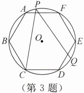 3.(2024四川内江统测)如图,正六边形ABCDEF内接于⊙O,点P在$\overset{\frown}{AF}$上,Q是$\overset{\frown}{DE}$的中点,则∠CPQ的度数为 (