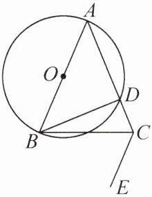 2. (2024 连云港周练)如图,在$\triangle ABC$中,$AB= AC$,以 AB 为直径的$\odot O$交边 AC 于点 D,连接BD,过点 C 作$CE// AB$.