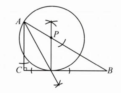 (2) 如图 2,在$\triangle ABC$中,$∠C= 90^{\circ }$,用直尺和圆规作$\odot P$,使它满足以下条件:圆心 P 在边 AB上,经过点 A,且与边 BC 相切.(保留作图痕迹,不用写出作法)