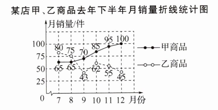 9. 某店对甲、乙两类商品的销量进行统计,去年下半年月销量折线统计图如图所示.