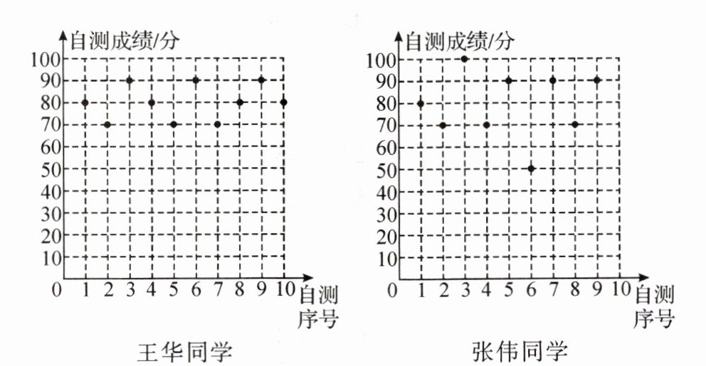 8. (2024四川绵阳开学考)王华、张伟两位同学分别将自己10次数学自我检测的成绩绘制成如下统计图: